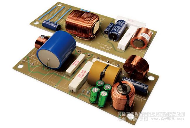 KEF的工程師們首先通過計算機對分頻網絡進行建模,先整體試聽分頻的表現,然后再試聽每一款元件的聲音,從而選擇失真最低、響應最平順的元件。Reference分頻元件均勻地安裝在獨立的板上,并從箱壁去耦,以減少振動和串擾。