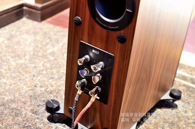 而箱背的接線柱也頗具特色,類似于小提琴調音弦軸的外形,造型典雅獨特,用家若想采用雙線分音模式的話,只需要將中間的接線柱扭開即可,非常方便。