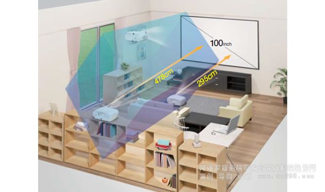 我一直倡導投影機進入普通家庭,其中一個非常重要的因素就是因為目前有相當部分的都市家庭的居住環境已經能夠滿足建立屬于他們自己的私人影院了。另外一方面,家用投影機廠商為了擴大影響,也在進一步提高投影機畫質的同時,推出了不少短焦距產品以滿足普通家庭用戶的需求。對于普通家庭來說,客廳無疑是最佳的投影機安裝地。因此,從目前大部分家用投影機的投影需求來看,只要你的客廳開間在4米以上,均能夠滿足安裝投影機的要求(以投影100英寸畫面為例)。當然,客廳開間在4米以下的朋友也并不是不能安裝投影機,只是投影畫面尺寸相應會縮小,觀看電影時的畫面沖擊力不夠。