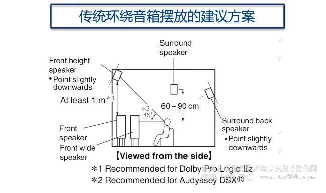 杜比全景聲技術的推出讓我們在家里的小空間就可以享受到與眾不同的真實音效,各大解碼器廠商也陸續推出相應的產品,而杜比全景聲的概念中已經把音箱數量看的不是那么重要,而我們要實現這種音效的還原,目前還必須要通過音箱的數量和擺位去實現真實的回放。那么做為日本天龍功放(DENON)對于新技術的應用與推廣一直走在前面,下面我們就來看看天龍功放推薦的杜比全景聲音箱的擺位。供各位參考!