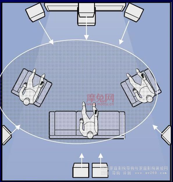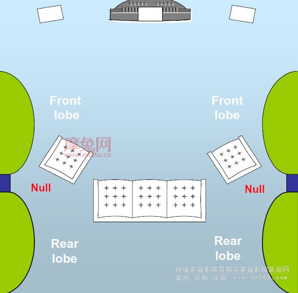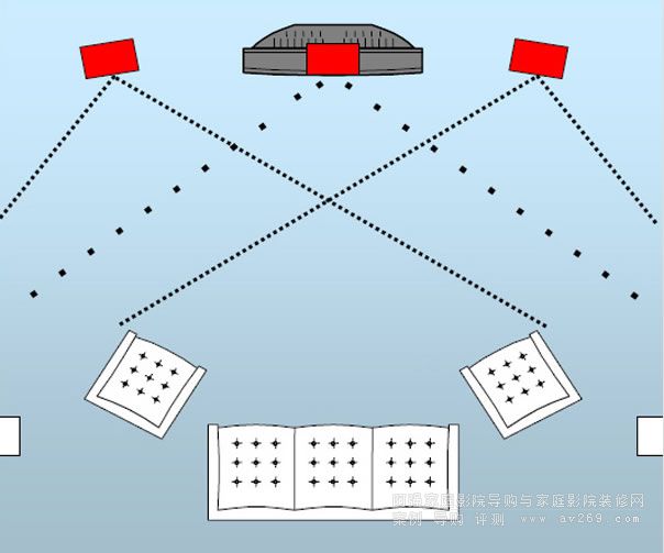 THX房間設(shè)計(jì)首先對(duì)視聽(tīng)室的選擇有明確的要求,因?yàn)榉块g的體積決定室內(nèi)最大聲壓級(jí),而其形狀對(duì)音質(zhì)有很大影響,選取用作視聽(tīng)室的房間某一邊的長(zhǎng)度不能是任何一邊長(zhǎng)度的整倍數(shù)。我們應(yīng)該始終選擇矩形房間,并且要注意房間中應(yīng)避免出現(xiàn)產(chǎn)生聲聚焦的凹面,凸面體是可以存在的。對(duì)于房間內(nèi)的聲音處理,可以參看前面“小房間的聲學(xué)理論”部分的處理建議?偟膩(lái)說(shuō),要使用正確的吸音和擴(kuò)散體控制混響時(shí)間。并且,要利用良好的隔音來(lái)保證任何時(shí)間都能使用家庭影院,卻能體驗(yàn)到聲軌的每一個(gè)細(xì)節(jié)。另外,合理的音箱擺位也是還原影院原音的重要步驟之一。這要求每位觀(guān)眾都能被揚(yáng)聲器所發(fā)出的聲音覆蓋,前方?jīng)]有任何遮擋。并且,每個(gè)座位都能聽(tīng)到同樣高質(zhì)量的音效。
