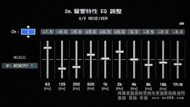 即使家庭劇院喇叭系統使用的是整套設計的喇叭系統,由于擺位及空間的影響,各喇叭傳遞到視聽位置的音色也不會完全一致,經過MCACC Pro量測之后可以對各聲道做EQ等化,讓各聲道音色一致。歡迎光臨阿強家庭影院導購網!