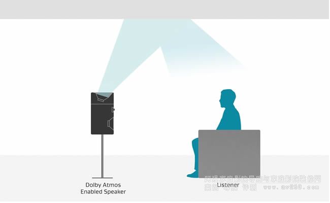 這類型的音箱的原理是通過(guò)天花反射聲來(lái)營(yíng)造上方聲場(chǎng)的效果