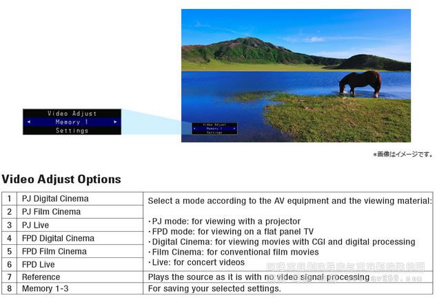 可針對(duì)不同顯示方式的顯示器如投影機(jī)、平面電視機(jī)等設(shè)定對(duì)應(yīng)的畫(huà)面輸出模式,或最大可儲(chǔ)存三個(gè)顯示器對(duì)應(yīng)記憶模式。