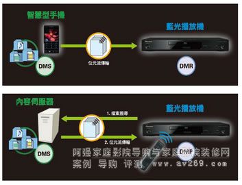 透過(guò) DLNA Certified™ 裝置如 NAS (網(wǎng)路硬碟)、智慧型手機(jī)或是個(gè)人電腦,利用位元流傳輸方式,播放你的整個(gè)媒體資料柜的音樂(lè)、影片、相片檔案。