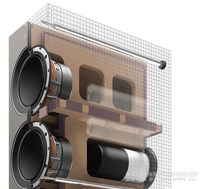 低音部分采用4只6.5英寸的鋁質振膜低音單元,再配合背后兩個導相孔,能重播出40Hz的低頻