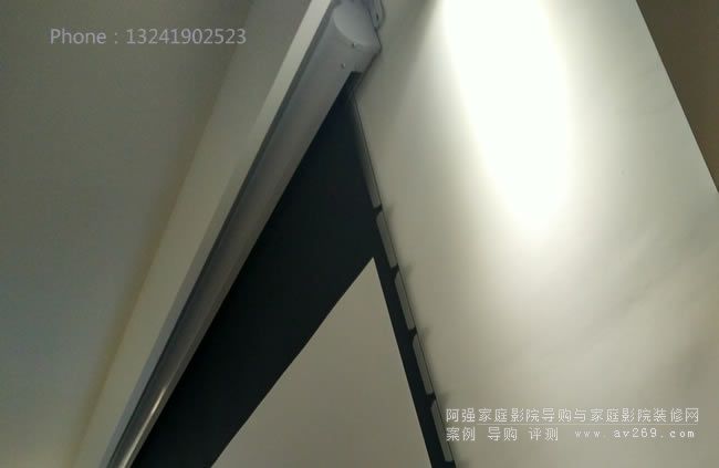 本款為客戶定制的由標(biāo)配線控改為內(nèi)置無線遙控器,且因為房高2.9米高,幕布上黑邊多加了20CM的黑邊,最終安全完的高度還是比較合適的。