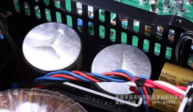 剛開始的時候,我接到的任務是僅評論CX-A5100,但后來想了一下,還是把它對應的MX-A5000后級一同調過來,然后組成一套完整的AV功放豈不是更好!然而,這款MX-A5000原本是搭配CX-A5000的。但事實上,后級與音效處理器/前級不同,對于一個成熟的設計,一般情況下是不會對它的線路作任何的改變!這款MX-A5000對應CX-A5100的11聲道設計,每聲道的輸出功率為230W(6Ω)。在設計上,它與CX-A5100一樣依然采用H型橫梁框架和剛性底部框架/雙成底部構造來加強機箱強度以達到降低震動的目的。供電方面,MX-A5000采用常規的線性電源,由一只環形變壓器來供電,濾波部分則采用2只27000微法的電容!但有網民認為,整機僅僅靠一只變壓器供電是不是有點不太給力?我想,如果YAMAHA會對MX-A5000進行改良,并推出升級型號的話,到時候就很有可能會出現雙變壓器以及濾波電容容量更大的新版機型了。
