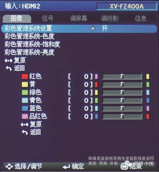可喜的是,色彩管理系統(tǒng)方面與X V-Z600A一樣都回歸到廣泛使用的6色校正系統(tǒng),搭配專業(yè)的色彩管理系統(tǒng),即可輕松地對色域進(jìn)行調(diào)整。不過白平衡方面則仍然采用單點(diǎn)灰階的設(shè)置方式,但由于暗部白平衡預(yù)設(shè)已經(jīng)相當(dāng)準(zhǔn)確,調(diào)校時只需針對高光部分進(jìn)行調(diào)整即可。阿強(qiáng)家庭影院導(dǎo)購網(wǎng)歡迎您!