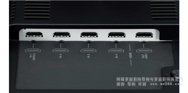 本機背板配備4組HDMI輸入,其中HDMI 1能對應4K視訊、能接Ultra HD Blu-ray播放機。