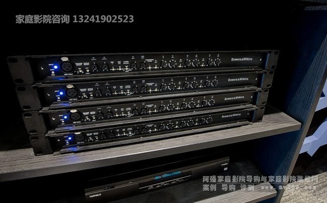 整個(gè)影音控制設(shè)備前級(jí)為TRINNOV Amethyst 24,后級(jí)有皇冠、 McIntosh MC-205和馬蘭士MM8807等組成