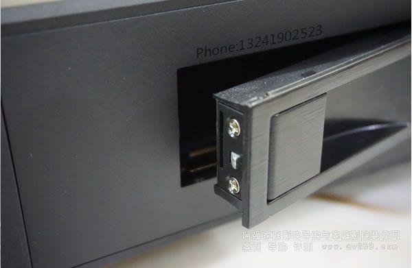 硬盤槽門卡口,用手拉時與彈簧片聯動推出槽門實現輕松裝卸硬盤