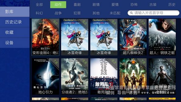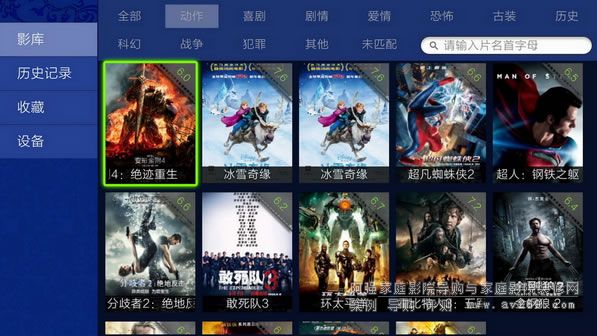 影庫海報墻體驗:提供海報墻、歷史記錄、收藏、設備四大窗口