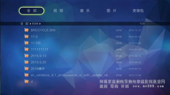 光標向上:可調出按全部、視頻、音樂、圖片、安裝包分類查看文件