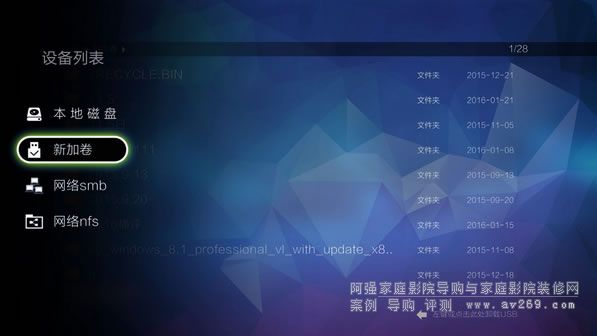 光標向左:可調出設備列表,自動找到NAS,支持SMB、NFS多種網絡協議方式資源讀取