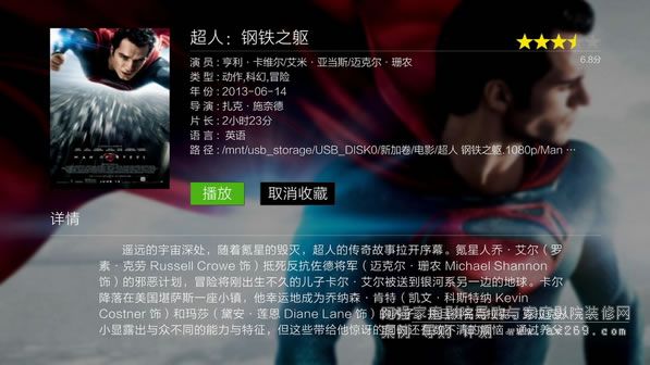 添加成功之后,本地電影會自動根據影片分類進入到各自欄目,并以海報形式展現,還有評分信息,點進去之后會有分類信息、詳細簡介,用戶選擇界面非常直觀。