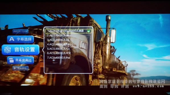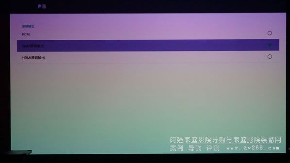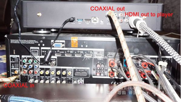 有些老款的AV功放不帶HDMI口只有SPDIF輸入,這個時候SPDIF則可以發揮重要的作用,筆者將HDMI口輸出到投影儀,SPDIF源碼輸出到AV功放進行解碼輸出。在三種播放模式下,因為圖像通過HDMI口輸出,聲音通過SPDIF輸出到AV功放進行解碼,分開解碼播放互不干擾,畫質和音質效果都更加干凈,這樣播放的效果最好,但是由于同軸的材質具有局限性,最多只能傳輸5.1聲道,對于7.1聲道的此時代音軌則只能“有心無力”了。從實際測試看出來,同軸傳輸次世代音軌降次輸出。家庭影院導購網www.2008wb.com