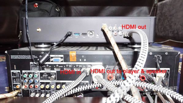 接線:開博爾Q10 HDMI輸出給功放,功放解碼聲音和畫面