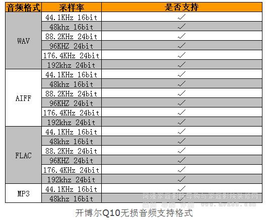 開博爾Q10無損音頻支持格式