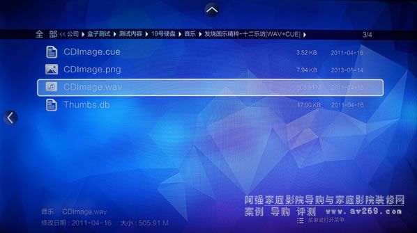 如果在不支持CUE列表的音頻播放機上播放,該WAV文件將會以單個文件播放,不能進行曲目選擇,而在開博爾Q10上播放,會以列表形式播放。
