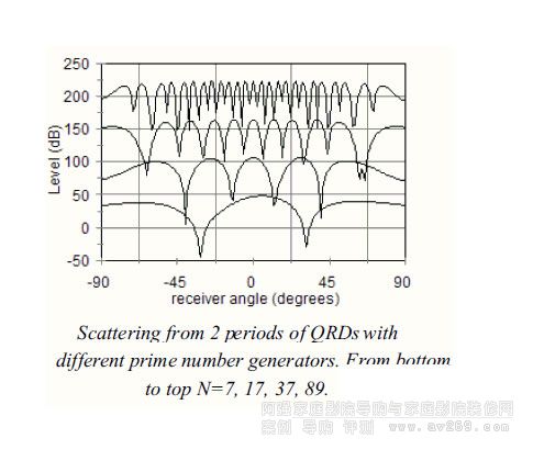 二次余數擴散板(簡稱QRD),具體不多介紹了,因為簡單的信息網上可以搜索到,有一些發燒友將它神化,但作為一個聲學愛好者的立場上看待問題,我認為QRD是用來解決聲學問題的,解決了聲學問題使聲音變得好聽也是自然的。有些人會疑問.QRD不就是一條簡單公式嗎?計算我早就會了。如果您認為QRD是簡單的公式那就錯了,QRD的理論是復雜的高數公式推導出來的,如果誰有好的數學基礎不妨研究下早期的電子文檔,會更有助于理解QRD原理,QRD的潛規則很多,本文不能將其一一列舉,當然本文主要是給國內QRD知識輸入一些新的血液。好了,我們開始從基本入手,這需要您回憶一點點小學數學。