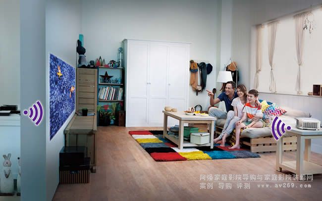 無線投影 一站式家庭娛樂明基WP2010家用投影機可讓你完全擺脫布線與安置的煩惱,改造居室的額外費用也省了,能夠無線傳輸未經壓縮的1080p全高清內容,并且支持3D投影。無論何時開機,還是日后重新啟動,一旦連接正確,信號發射器與W1075上的接收器便會自動配對。沒有比這更簡單的了!阿強家庭影院導購網歡迎您!
