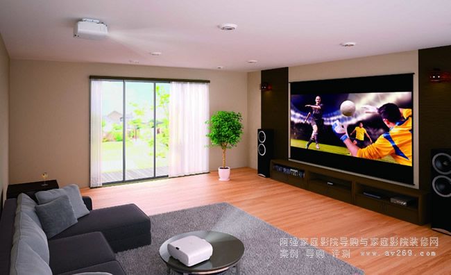 「正規(guī)的」投影機(jī)裝設(shè)方式就像左圖,把投影機(jī)吊掛裝設(shè)在正對(duì)銀幕的座位后方,然而您若是用TW8300W、裝投影機(jī)的方法就自由多了:請(qǐng)見(jiàn)右圖,由于本機(jī)的進(jìn)出風(fēng)口都在正面、后方不用預(yù)留散熱空間,有無(wú)線傳輸、接上電(不用拉HDMI線)就可以用,再加上它有很大的水平垂直Lens Shift幅度,所以可以像本圖一樣、把它擺在座位側(cè)后方的柜子裡都還能正常使用,不僅能讓用家觀賞高畫(huà)質(zhì)的大畫(huà)面、還能保持居家空間的整齊美觀。