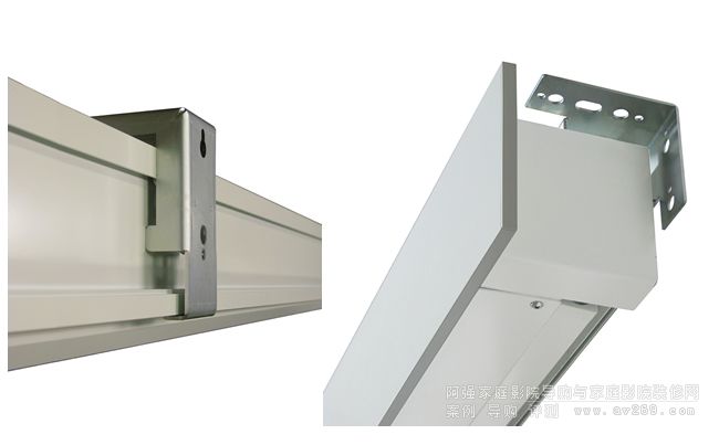 1、采用L托架,先把托架固定在墻上,然后幕布上到托架上,同時幕布可以在托架上左右移動,方便確定幕布中心。最后確定位置后用螺絲可以固定位置,不再移動。值得一提的是幕布中心設置了中心帖,這樣在尋找投影機同幕布中心時候非常便捷!