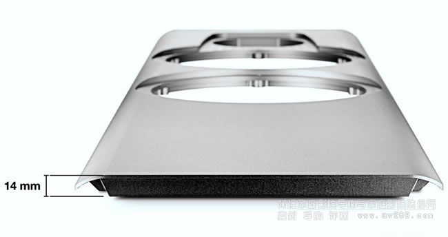 雖然音箱前障板已厚達26mm,但Contour系列的單體并非直接鎖在上頭,而是如同自家旗艦系列Evidence與頂級系列Confidence一 樣,先鎖固在一塊超厚重的鋁板上,這塊由CNC電腦機具切削的鋁板厚達14mm,兩側彎曲的弧線能與音箱毫無縫隙地接合。Contour 60包括高音、中音與兩支低音都藉由這塊厚鋁板隔絕傳遞到音箱上的震動能量,高音部分更另外再添加一塊5mm厚鋁板,透過雙重鋁合金障板進一步降低對高音振膜之干擾。對了,全新Contour系列所配備的高音單體是與旗艦Evidence系列相同的Esotar2,要知道Contour系列的售價還不到 Evidence的十分之一,這實在是太超值了!