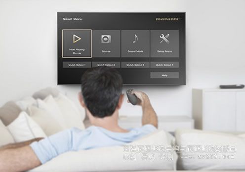 通過某些智能電視上的HDMI CEC(消費者電子控制)功能,可以通過電視的遙控器控制SR5012。將接收機的“HDMI控制”設(shè)為ON,設(shè)置“智能菜單”接收機控制功能,通過電視機上的智能菜單主頁屏幕,您能對源和環(huán)繞聲模式選擇、主設(shè)置菜單和智能選擇配置預設(shè)進行直接訪問。