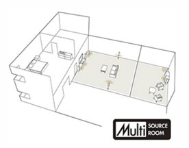 高級多區(qū)域選項;7.2聲道前級輸出;RS232控制 > 在多個房間播放音頻和視頻;預升級第三方家庭自動化系統(tǒng)