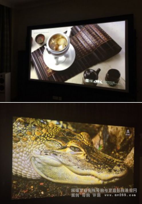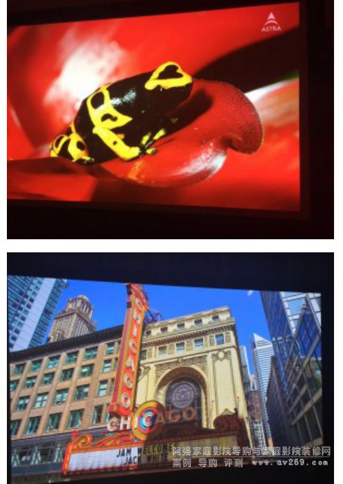 在展會現(xiàn)場,搭配兩個品牌投影機(jī),一個是索尼剛剛推出的最高性價比4K 投影機(jī) 268,1500流明,投影幕尺寸為120寸 。另外一個是JVC Z1 激光光源 3000流明,因?yàn)閳龅卦蛑荒芡渡?20寸,本來可以投射更大畫面的,有點(diǎn)遺憾!兩個展示現(xiàn)場遮光做了簡單的處理,但是由于展會參觀人比較多,現(xiàn)場也需要講解,所以走廊燈是常亮的狀態(tài)。
