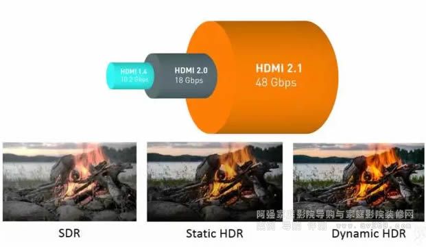 2017年,HDMI2.1將帶寬一口氣增加到48Gbps,支持8K/60Hz、4K/120Hz格式的視頻,16bit色深,并能傳輸動態HDR數據,也就是Dolby Vison。目前最廣泛流行的HDR10是基于靜態元數據,用一套數據控制所有畫面和場景,而基于動態元數據的Dolby Vison明顯精確得多,它是針對每個場景每一幀進行調整,這樣所有畫面都能顯示出最自然最佳的狀態。