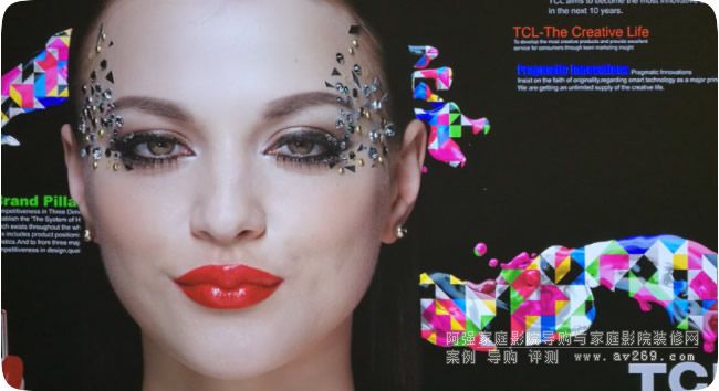 黑色背景非常純,能夠沉下去。同時此時的人物膚色也非常自然,口紅的色彩也鮮艷且具有光澤,這就是3LCD投影機在色彩方面的優勢了。