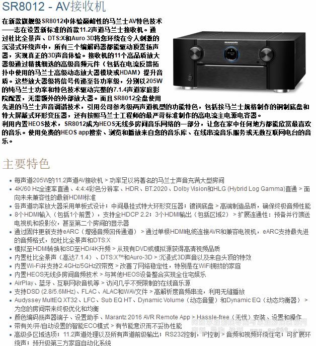 馬蘭士的j型號編號是SRX009、SRX010、SRX011、SRX012。 SR8012應該算日系進入沉浸式環(huán)繞聲之后的第三代或者第四代產(chǎn)品產(chǎn)品(分不清三四,是因為當中有一代沒有進中國)。