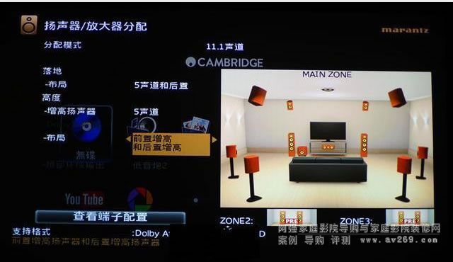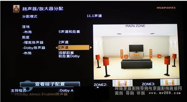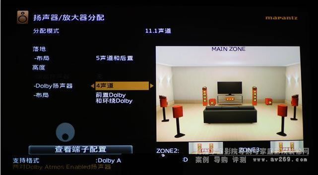 大家注意,分配模式雖然是11.1,但實際上,這里一共是12.1聲道。這個模式是支持Auro 3D的7.1.1.4,他在傳統(tǒng)的7.1.4之中,加入了房間最中間頂上的天空聲道。