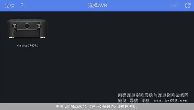 APP啟動后,便會掃描在手機連接的局域網(wǎng)之內(nèi),有哪些支持Audyssey APP的功放產(chǎn)品。