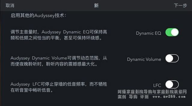 而如果你要用兩支杜比反射式揚聲器,那么增高聲場的選項就要讓2聲道的名額出來。