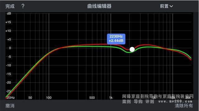 你可以在房間校正結(jié)果中看到校正前和校正后的差別。