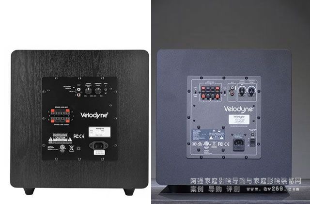 除了低音單元的改良之外,Impact 12 MKII在外觀方面的改良也是很大的,雖然Impact 12 MKII與Impact 12一樣都是全黑的箱體,但新版Impact 12 MKII看起來顯得更帥氣和高檔。主要是因為Impact 12 MKII的箱體表面采用啞光處理,而且低音單元的振膜表面也是平滑的,相比起老款的Impact 12那個保守的木紋外皮以及有粗糙感的低音單元振膜表面,Impact 12 MKII的確增添了不少時尚的氣息。而且在設計的細節上,Impact 12 MKII會做得更好一點。第一:前障板的裝飾條在設計上有所變化,同時低音單元邊框也安裝了一款黑亮的裝飾條,可以顯得更高檔;第二:低音單元中央加入了“Velodyne”的Logo,我估計這是考慮到代理商或者經銷商喜歡拆下網罩進行展示,那么這樣仍能讓人知道這是“威力登”的出品吧;第三:Impact 12 MKII的導相管做到與底部齊平,而非突出一部分;第四:功放模塊的背板設計有所變化,加入了總電源開關,擔心長期帶電而出問題的用家可以將低音音箱的電源完全斷掉。此外,音量和分頻點控制旋鈕的工藝更好,而且提示文字從英文變成了中文,更符合中國國情。