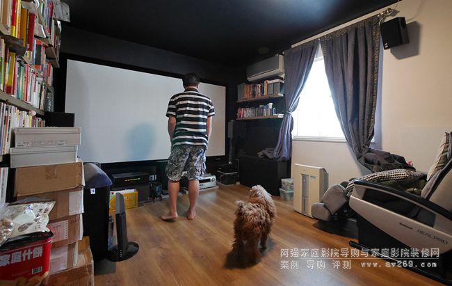 這是 Brain 人生中擁有的第二隻 OS 投影幕,之前是手拉式投影幕。Brian曾經(jīng)為自己與朋友合共安裝過2隻手拉幕,1隻電幕,5隻固定幕,今次再為自己出手,Brian身后面的長毛飛是呀 Money 先生。