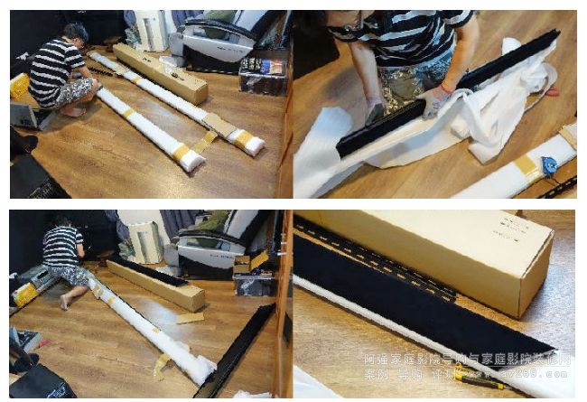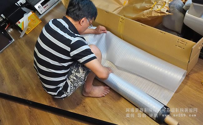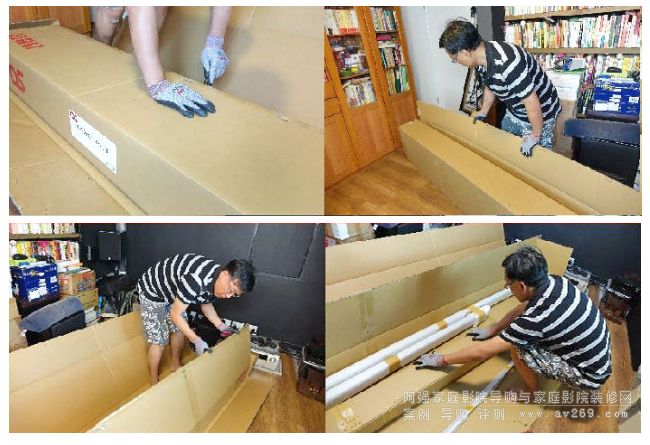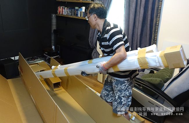 有了目標(biāo)位置,就開始拆箱,樓底高,走廊濶,二樓開放式設(shè)計,整箱包裝要神龍擺尾把暫放樓梯的OS幕搬入發(fā)燒房是零難度的事。