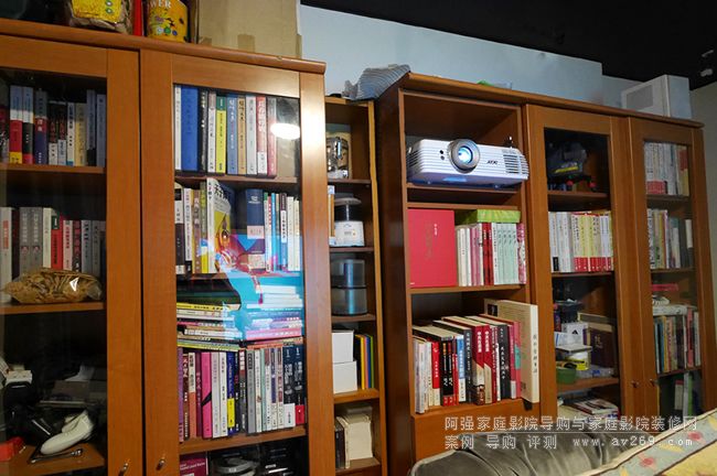 OS BU 201 高增益投影幕是有最佳可視角度,由于 Brian 把幕降下了,投影機(jī)不能依舊放在柜頂,現(xiàn)在放到下層來達(dá)到最佳可視角度。