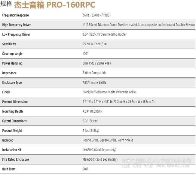 杰士音箱 PRO-160RPC 6.5寸嵌入式音箱