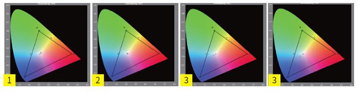 圖1:在SDR(非HDR)的狀態下,我們選擇了用戶(標準色彩預設)預設模式作為基礎機型調校,在畫面亮度輸出與色域范圍之間取得了不錯的平衡,從調校后的結果可以看到色域范圍略大于BT.709標準,但并沒有出現明顯的色調與亮度偏差問題,整體色彩準度還是不錯的,而且還增加了色彩的鮮艷性
