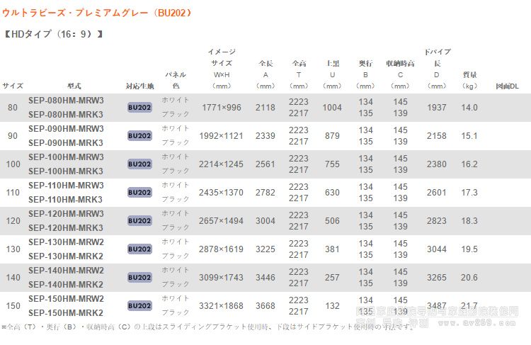 最大尺寸可制作146寸(16:9)。(需特定)