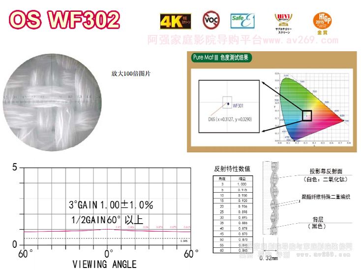 ④布料表面涂層為二氧化鈦,實現了增益為 1 的這一參考級指標,同時保持了擴散性布料特質;