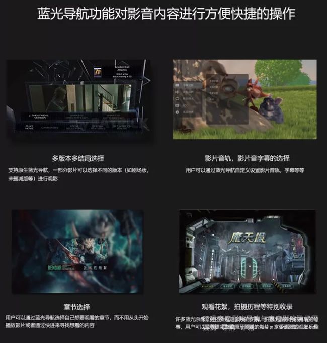 原盤藍光導(dǎo)航菜單 支持播放藍光原盤文件,支持藍光原版導(dǎo)航菜單,原汁原味的藍光播放體驗,還原影片自然聲色,看完整的電影帶來震撼的表現(xiàn)。