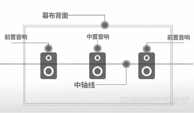 專業(yè)影院,幕布中軸同一水平線上擺放的實例