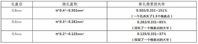 由此可見,孔徑大小非常重要,越大透出去的光線就越多,像素丟失也就越嚴重。